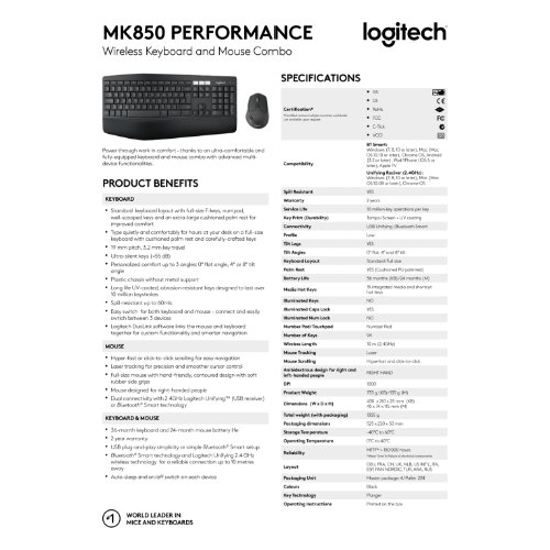 - Erleben Sie Komfort und Produktivität auf völlig neuem Niveau mit dem leistungsstarken MK850 Performance Set. Dank gepolsterter Handballenauflage und geschwungen geformter Tastatur und Maus erleben Sie höchsten Komfort beim Arbeiten. Sie können von der Tastatur und von der Maus aus den Bildschirm wechseln und reibungslos an verschiedenen Geräten arbeiten.