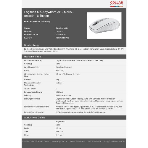 Jetzt anmeldenProduktinformationen "Logitech MX Anywhere 3S - Maus - optisch - 6 Tasten"