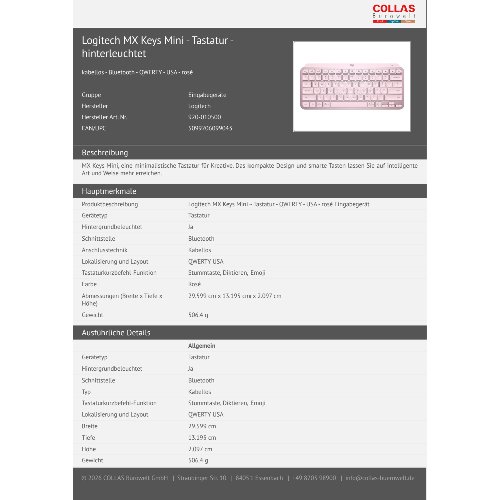 Jetzt anmeldenProduktinformationen "Logitech MX Keys Mini - Tastatur - hinterleuchtet"