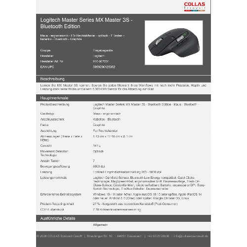 Jetzt anmeldenProduktinformationen "Logitech Master Series MX Master 3S - Bluetooth Edition"