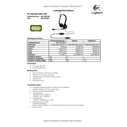 Jetzt anmeldenProduktinformationen "Logitech PC Headset 960 USB - Headset - On-Ear"