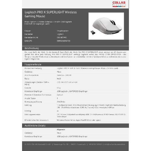 Jetzt anmeldenProduktinformationen "Logitech PRO X SUPERLIGHT Wireless Gaming Mouse"