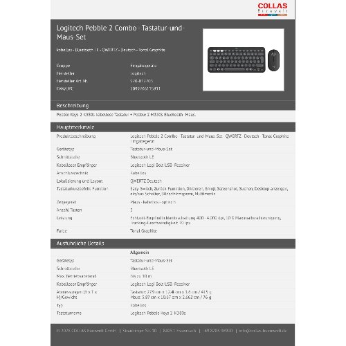 Logitech Pebble 2 Combo - Tastatur-und-Maus-Set - kabellos - Bluetooth LE - QWERTZ - Deutsch - Tonal Graphite