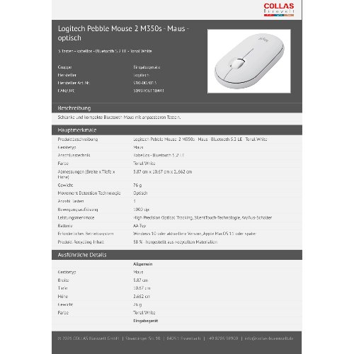 Jetzt anmeldenProduktinformationen "Logitech Pebble Mouse 2 M350s - Maus - optisch"