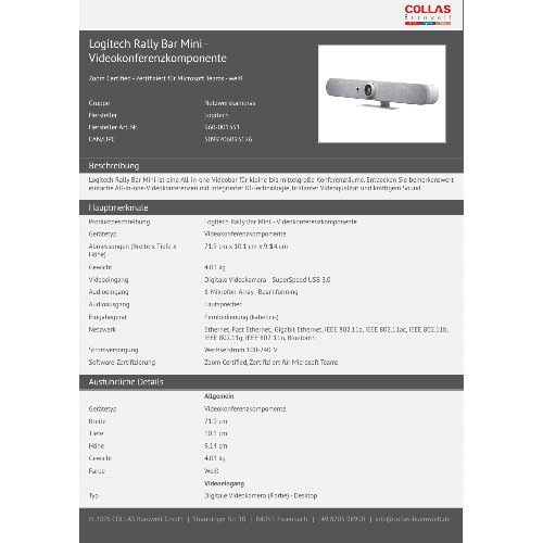 Jetzt anmeldenProduktinformationen "Logitech Rally Bar Mini - Videokonferenzkomponente"
