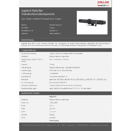 Jetzt anmeldenProduktinformationen "Logitech Rally Bar - Videokonferenzkomponente"