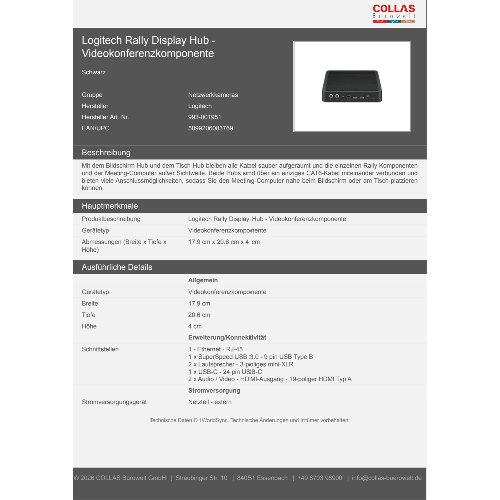 Jetzt anmeldenProduktinformationen "Logitech Rally Display Hub - Videokonferenzkomponente"
