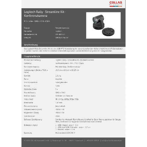 Jetzt anmeldenProduktinformationen "Logitech Rally - Streamline Kit - Konferenzkamera"