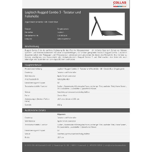 - Rugged Combo 3 ist die perfekte Ergänzung für das iPad im Klassenzimmer – ein sicheres Case zum Schutz vor Stürzen, Spritzern und Kratzern kombiniert mit einer strapazierfähigen, für Schüler geeigneten Tastatur. Rugged Combo 3 wurde in Zusammenarbeit mit Pädagogen und IT-Spezialisten entwickelt und unterstützt Sie dabei, den Fortschritt Ihrer Schüler zu fördern, unabhängig von Klassenstufe oder Aufgabenbereich. Rugged Combo 3 und iPad machen den Unterricht noch lebendiger mit Tausenden von Lern-Apps, Büchern und Kursen.