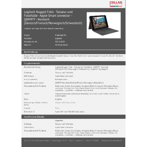 Jetzt anmeldenProduktinformationen "Logitech Rugged Folio - Tastatur und Foliohülle - Apple Smart connector - QWERTY - Nordisch (Dänisch/Finnisch/Norwegisch/Schwedisch)"