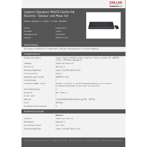 Produktinformationen "Logitech Signature MK650 Combo for Business - Tastatur-und-Maus-Set"