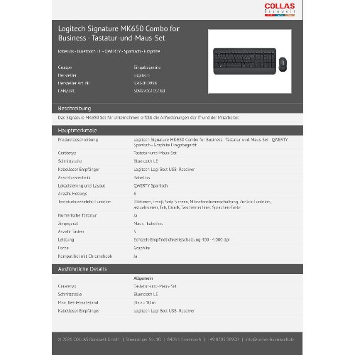 Jetzt anmeldenProduktinformationen "Logitech Signature MK650 Combo for Business - Tastatur-und-Maus-Set"