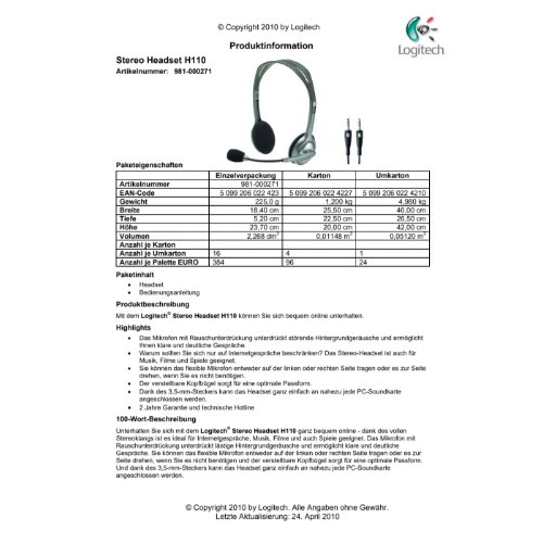 Jetzt anmeldenProduktinformationen "Logitech Stereo Headset H110 - Headset - On-Ear"