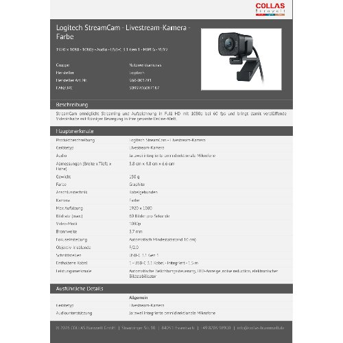 Jetzt anmeldenProduktinformationen "Logitech StreamCam - Livestream-Kamera - Farbe"