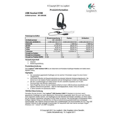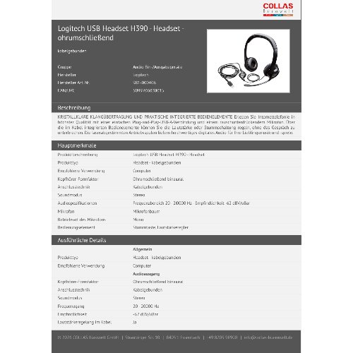 Jetzt anmeldenProduktinformationen "Logitech USB Headset H390 - Headset - ohrumschließend"