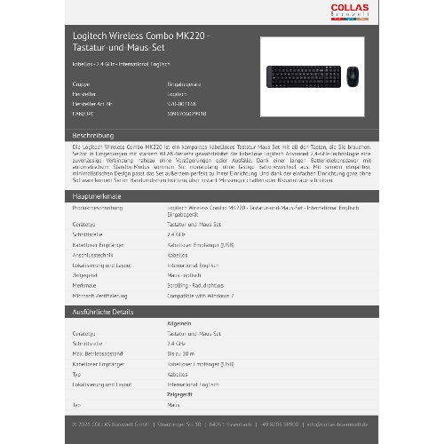 Jetzt anmeldenProduktinformationen "Logitech Wireless Combo MK220 - Tastatur-und-Maus-Set"