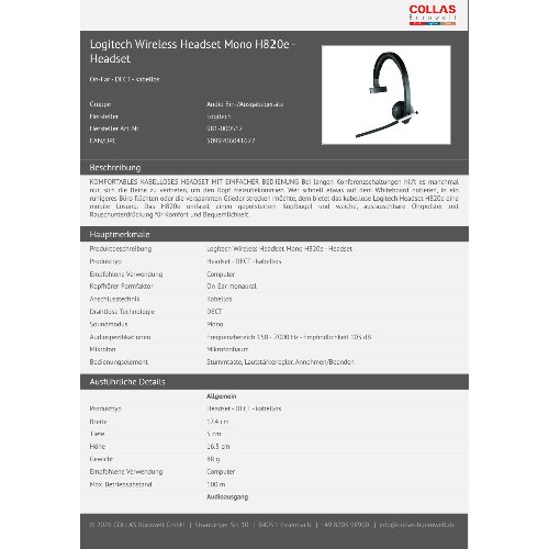 Jetzt anmeldenProduktinformationen "Logitech Wireless Headset Mono H820e - Headset"