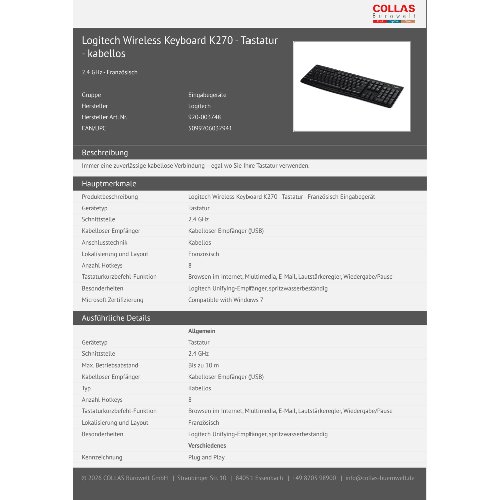 Jetzt anmeldenProduktinformationen "Logitech Wireless Keyboard K270 - Tastatur - kabellos"