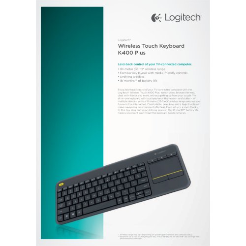 Jetzt anmeldenProduktinformationen "Logitech Wireless Touch Keyboard K400 Plus - Tastatur"