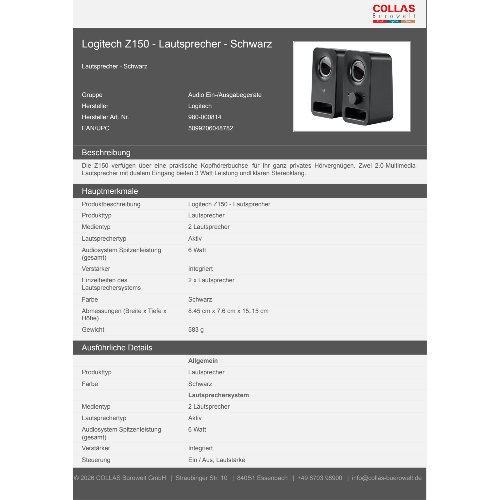 Jetzt anmeldenProduktinformationen "Logitech Z150 - Lautsprecher - Schwarz"