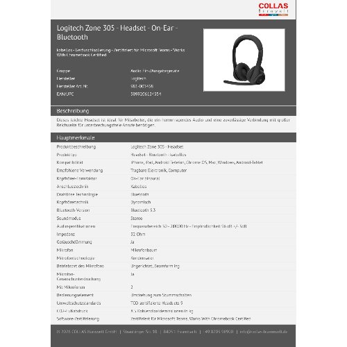 Jetzt anmeldenProduktinformationen "Logitech Zone 305 - Headset - On-Ear - Bluetooth"