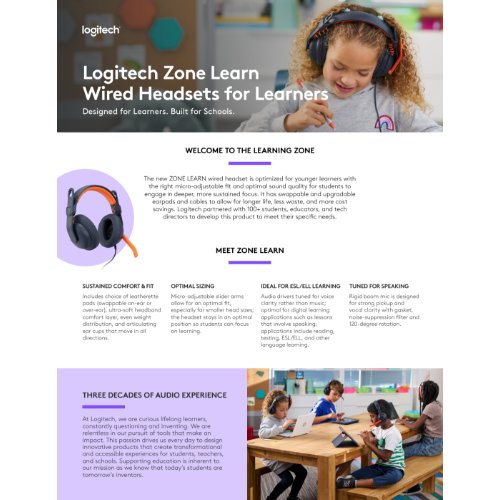 - Entwickelt für die Schule, gebaut für die Zukunft. Zone Learn ist ein klassenzimmertaugliches kabelgebundenes Headset-System für PC, Mac und Chromebook mit klarer Audioqualität.