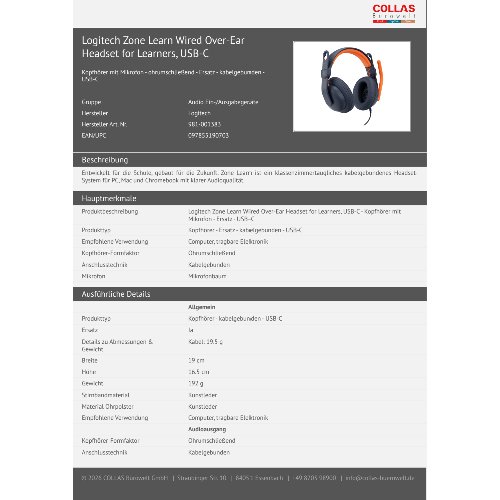 Jetzt anmeldenProduktinformationen "Logitech Zone Learn Wired Over-Ear Headset for Learners, USB-C"