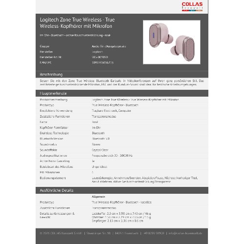 Jetzt anmeldenProduktinformationen "Logitech Zone True Wireless - True Wireless-Kopfhörer mit Mikrofon"