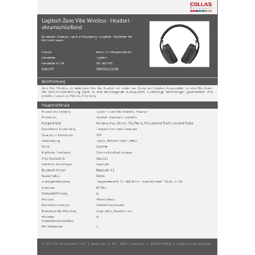 - Zone Vibe Wireless, ein kabelloses Over-Ear-Headset mit modernem Design und Komfort. Ausgestattet mit zwei Mikrofonen mit Geräuschunterdrückung bietet es eine hervorragende Audioqualität. Zuverlässige Verbindungen gewährleisten eine unterbrechungsfreie Meeting-Erfahrung.