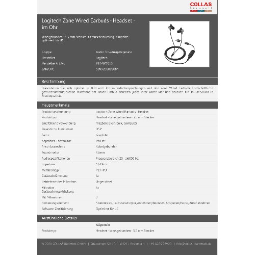 Jetzt anmeldenProduktinformationen "Logitech Zone Wired Earbuds - Headset - im Ohr"