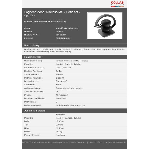 - Das Zone Wireless ist ein Bluetooth -Headset für standortunabhängige Produktivität mit hervorragendem Klang, Mikrofon mit einfacher Stummschaltung und Qi Wireless Charging.