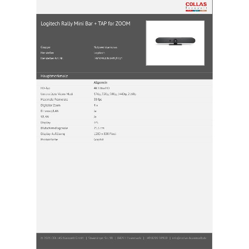 Jetzt anmeldenProduktinformationen "Logitech h Rally Bar Mini+ Tap Cat5 Videokonferenzsystem Ethernet/LAN"