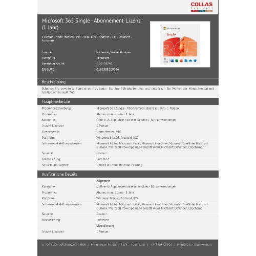 Jetzt anmeldenProduktinformationen "Microsoft 365 Single - Abonnement-Lizenz (1 Jahr)"