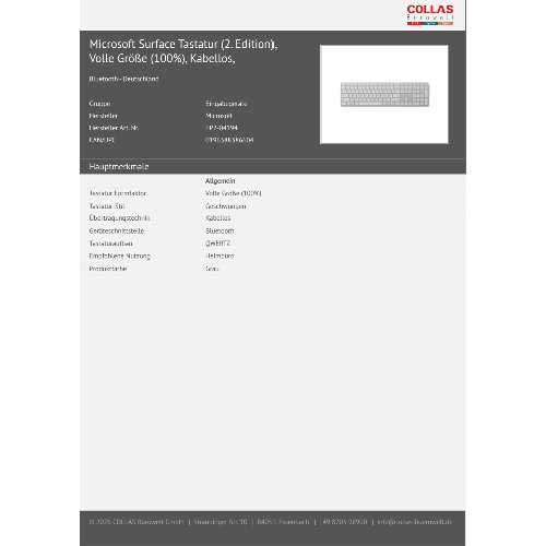 Jetzt anmeldenProduktinformationen "Microsoft Surface 2. Editionsilber mit Copilot-Taste - Tastatur - QWERTZ"