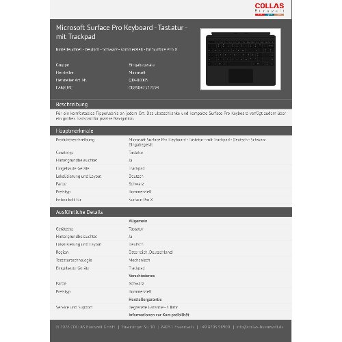 Jetzt anmeldenProduktinformationen "Microsoft Surface Pro Keyboard - Tastatur - mit Trackpad"