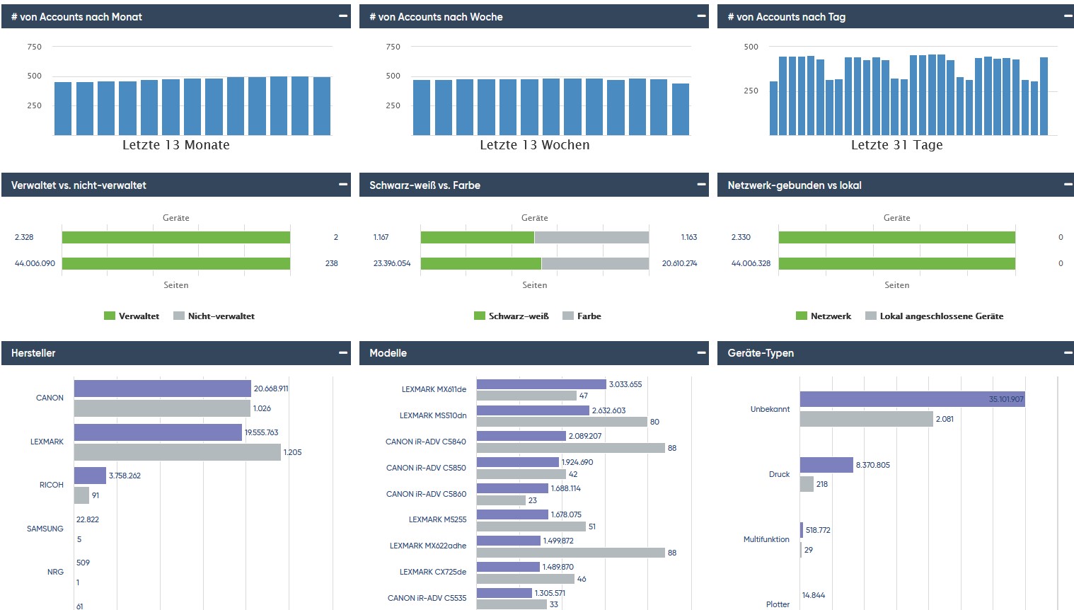 - Einheitliche Verwaltung aller Drucker mit modernster Geräteverfolgung