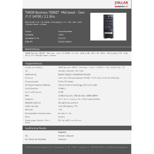 Jetzt anmeldenProduktinformationen "TAROX Business 7000ZT - Mid tower - Core i7 i7-14700 / 2.1 GHz"