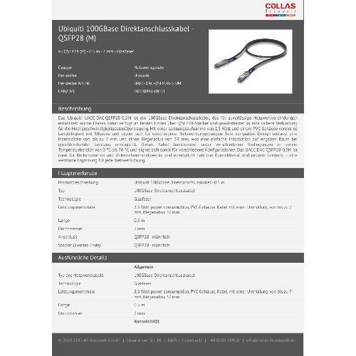 Jetzt anmeldenProduktinformationen "Ubiquiti 100GBase Direktanschlusskabel - QSFP28 (M)"