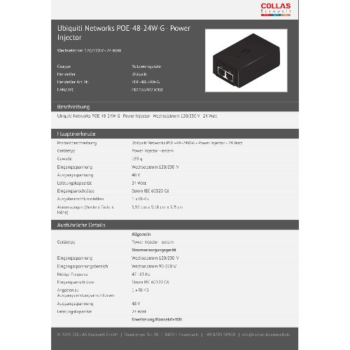 Jetzt anmeldenProduktinformationen "Ubiquiti Networks POE-48-24W-G - Power Injector"
