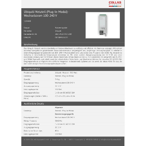 - Das Ubiquiti-Netzteil wurde entwickelt, um Netzwerkhardware zuverlässig und effizient mit Strom zu versorgen. Mit seinem robusten Stahlgehäuse gewährleistet dieses Netzteilmodul Langlebigkeit und langfristige Leistungsfähigkeit. Es arbeitet in einem Eingangsspannungsbereich von 100–240 V Wechselstrom und unterstützt eine Frequenz von 50/60 Hz, wodurch es vielseitig in verschiedenen Umgebungen einsetzbar ist. Mit einer stabilen Ausgangsspannung von 12 V DC und einer maximalen Leistung von 550 W kann dieses Steckmodul einen Strom von bis zu 45 A verarbeiten. Es entspricht den IC-, FCC- und NDAA-Standards und erfüllt somit die erforderlichen Sicherheits- und Qualitätsrichtlinien. Der einzelne IEC 60320 C14-Eingangsanschluss ermöglicht eine einfache Integration in bestehende Systeme und ist somit die ideale Wahl für alle, die nach zuverlässigen Stromversorgungslösungen suchen.