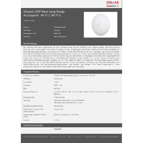 Jetzt anmeldenProduktinformationen "Ubiquiti UISP Wave Long-Range - Accesspoint - Wi-Fi 5, Wi-Fi 6"