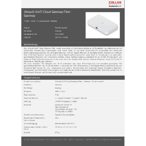 Jetzt anmeldenProduktinformationen "Ubiquiti UniFi Cloud Gateway Fiber - Gateway"