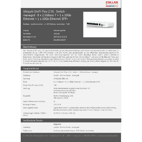 Jetzt anmeldenProduktinformationen "Ubiquiti UniFi Flex 2.5G - Switch - managed - 8 x 2.5GBase-T + 1 x 10Gb Ethernet + 1 x 10Gb Ethernet SFP+"