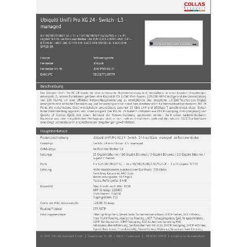 Jetzt anmeldenProduktinformationen "Ubiquiti UniFi Pro XG 24 - Switch - L3 - managed"