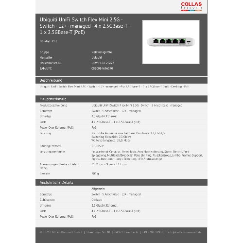 Jetzt anmeldenProduktinformationen "Ubiquiti UniFi Switch Flex Mini 2.5G - Switch - L2+ - managed - 4 x 2.5GBase-T + 1 x 2.5GBase-T (PoE)"