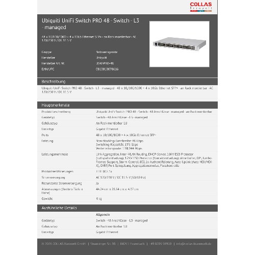 Jetzt anmeldenProduktinformationen "Ubiquiti UniFi Switch PRO 48 - Switch - L3 - managed"