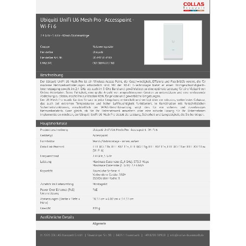 Jetzt anmeldenProduktinformationen "Ubiquiti UniFi U6 Mesh Pro - Accesspoint - Wi-Fi 6"