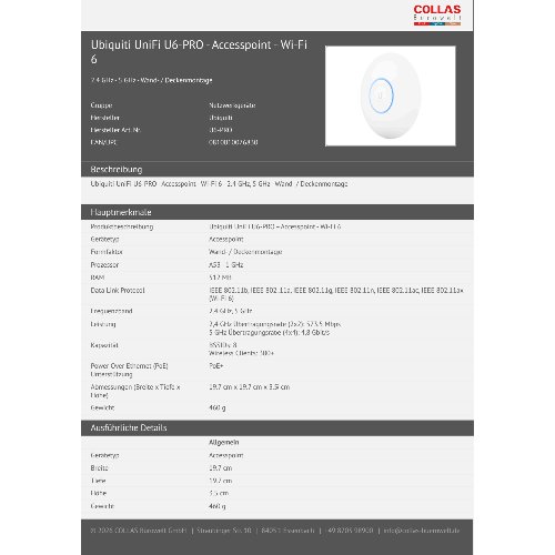 Jetzt anmeldenProduktinformationen "Ubiquiti UniFi U6-PRO - Accesspoint - Wi-Fi 6"