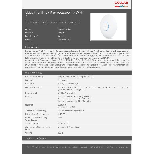 Jetzt anmeldenProduktinformationen "Ubiquiti UniFi U7 Pro - Accesspoint - Wi-Fi 7"